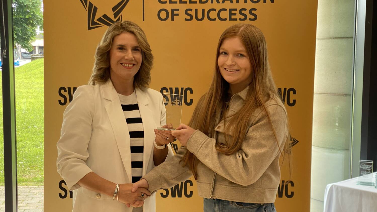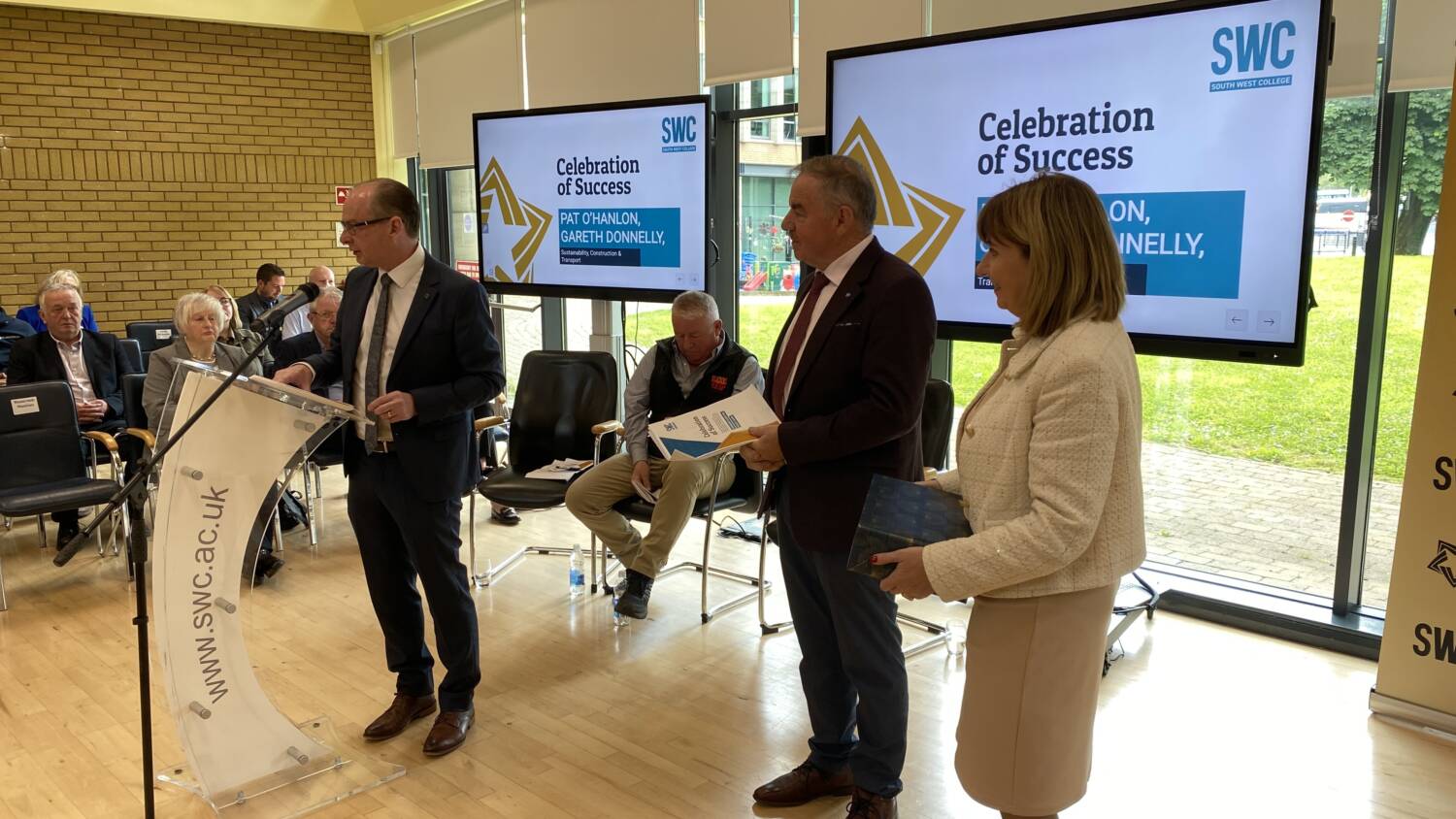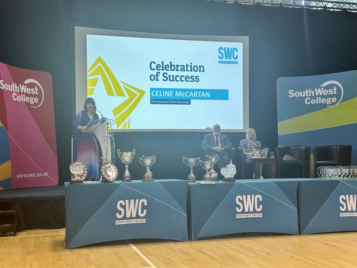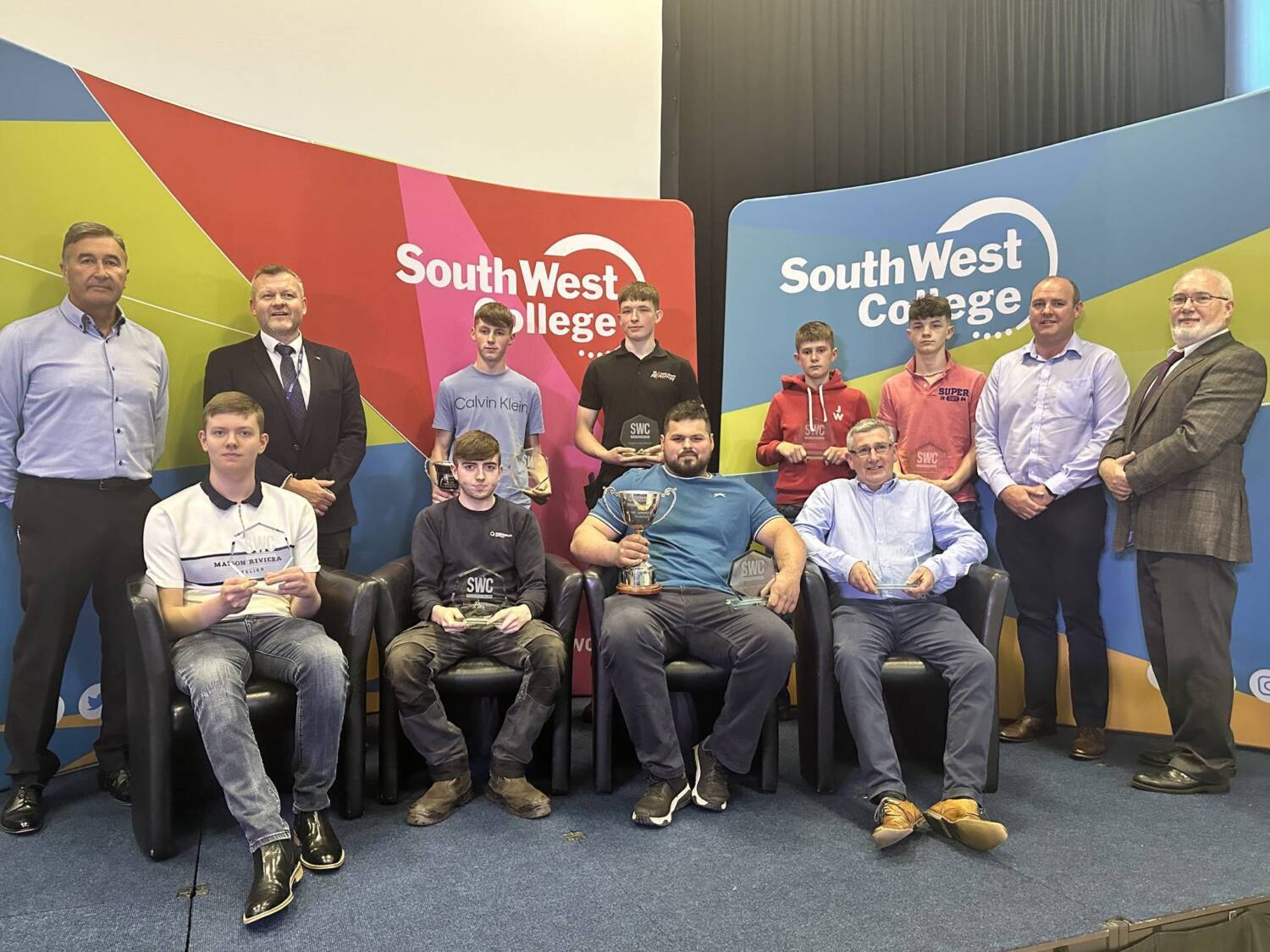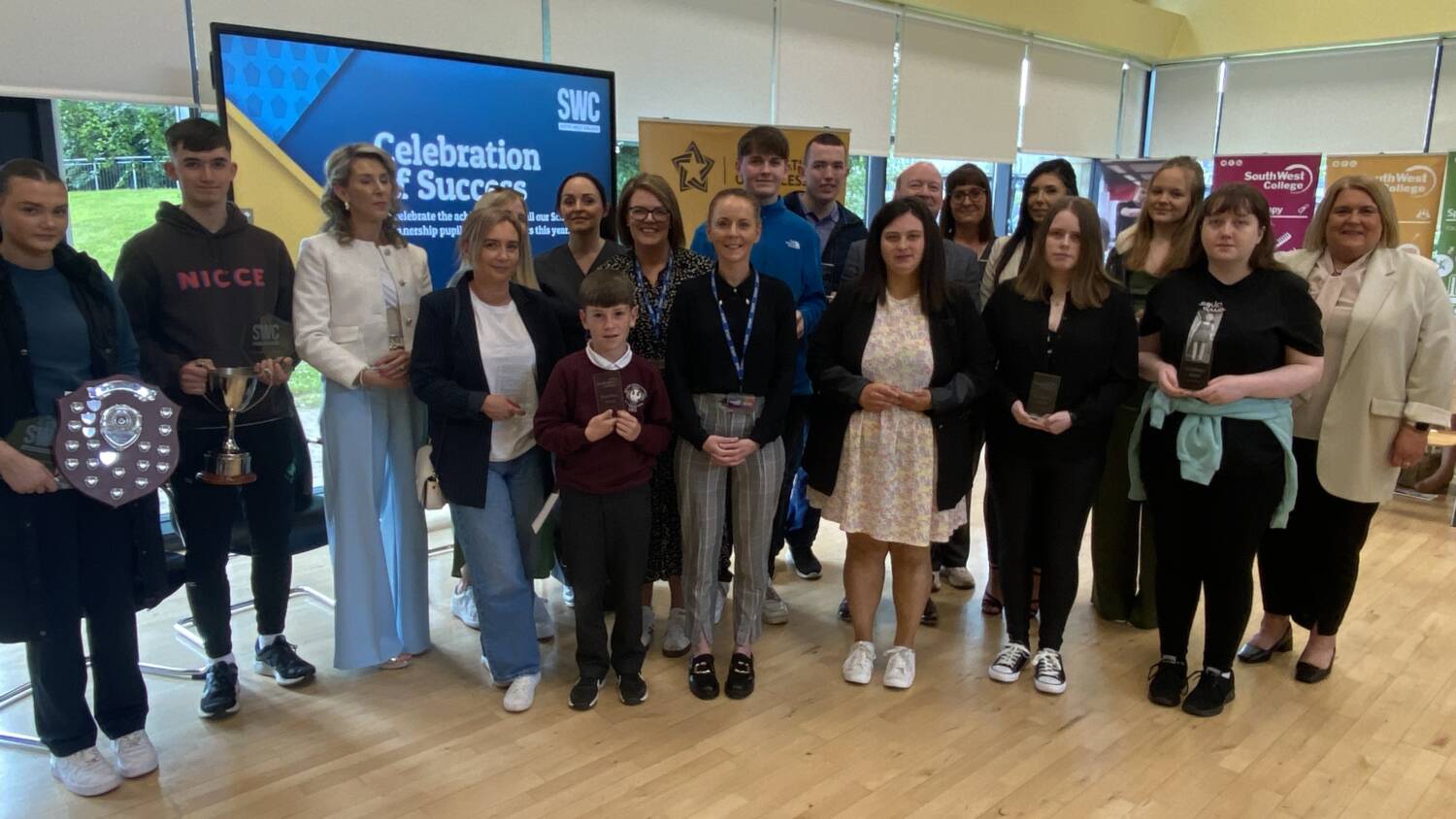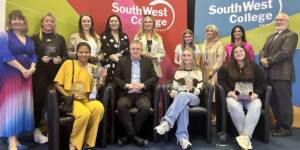 South West College recognise student achievements at Celebration of Success Awards 2024 24 Jun 2024 South West College (SWC) recently held its annual 'Celebration of Success Awards' to honour the exceptional achievements of Further Education, Apprenticeship Students, and Schools Partnership pupils. The ceremonies, which took place at the Omagh, Dungannon, and Erne campuses, celebrated the academic, skills, and community excellence of hundreds of outstanding learners. Family, friends, and tutors came together to applaud the accomplishments of the top learners in SWC's various courses, including Level 1, Level 2, and Level 3 Diplomas. These learners will now move on to pursue higher education at the College, University, or secure employment. During the events, Campus Managers at each location warmly welcomed students and their families from Tyrone, Fermanagh, and Mid-Ulster while recognizing the hard work and determination shown by each learner. Omagh Campus At the Omagh campus, guest speaker Benny O’Hanlon, Omagh Chamber of Commerce/Ulster Herlad ‘Businessperson of the Year’ and founder of Todds Leap, delivered an inspiring message emphasizing the importance of education and lifelong learning, highlighting the significance of cherishing success, being proud of achievements, and setting goals for the future. Erne Campus At the Erne campus Guest speaker Joe McGirr, Founder of Boatyard Distillery and former SWC student, shared his inspiring journey to success. Joe highlighted how his education and passion for hospitality played a crucial role in setting up his own distillery business, emphasizing the importance of education as a stepping stone to achieving future success. Dungannon Campus During the Dungannon campus celebration of success, we were honoured to have former student Jane Dunseath as our special guest speaker. Jane's journey at the college began as a Year 11 Occupational Studies student, and she later pursued full-time studies in Level 2 and Level 3 childcare. Currently, she is completing her honours Degree in Special Educational Needs and Disability Studies at Liverpool Hope University. Jane shared her inspiring post-SWC journey with us, reminding everyone to strive towards their dreams and make them a reality. Celine Mc Cartan, South West College Principal and Chief Executive, offered closing remarks and expressed delight for another successful year while extending congratulations to all students. “To each of the learners collecting awards today, I offer you my warmest congratulations. This is your day, one I am sure you have been looking forward to sharing in the company of your fellow classmates and lecturers, and of course with your family and friends, who have supported you every step of the way. Today we acknowledge the best of the best, some awards recognise academic and skills excellence, whilst others reflect the dedication and commitment you have made to our college community and your future success. I hope you and your guests enjoy this memorable day, and I wish you continued success in the next stage of your career.” Further Education South West College is still accepting applications for full and part-time courses starting in September 2024. Apply now! Share Sign up. Get Qualified. Succeed. Subscribe now for hand-picked courses, inspiration and the latest news and offers, straight to your inbox. The details provided will be used to send you relevant information about SWC. Subscribe now for hand-picked courses, inspiration and the latest news and offers, straight to your inbox. The details provided will be used to send you relevant information about SWC.